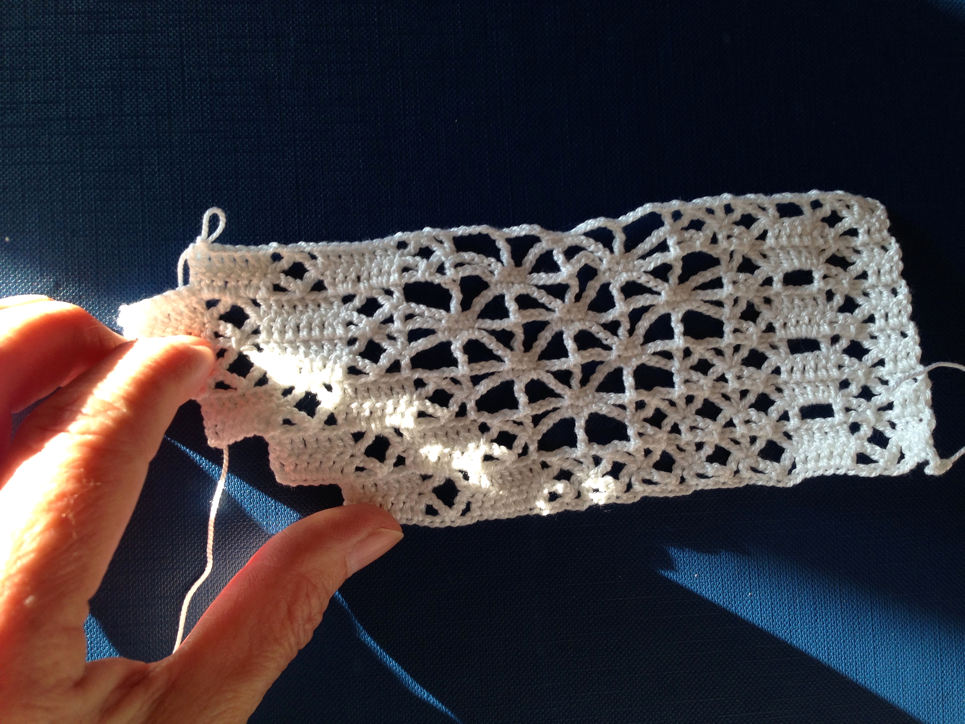 This swatch shows a pattern I found on Pinterest. Today I’ll start crocheting the real thing. Maybe borders for new curtains? Our old house loves lace curtains! Here’s a link to an amazing page with lovely crochet patterns.