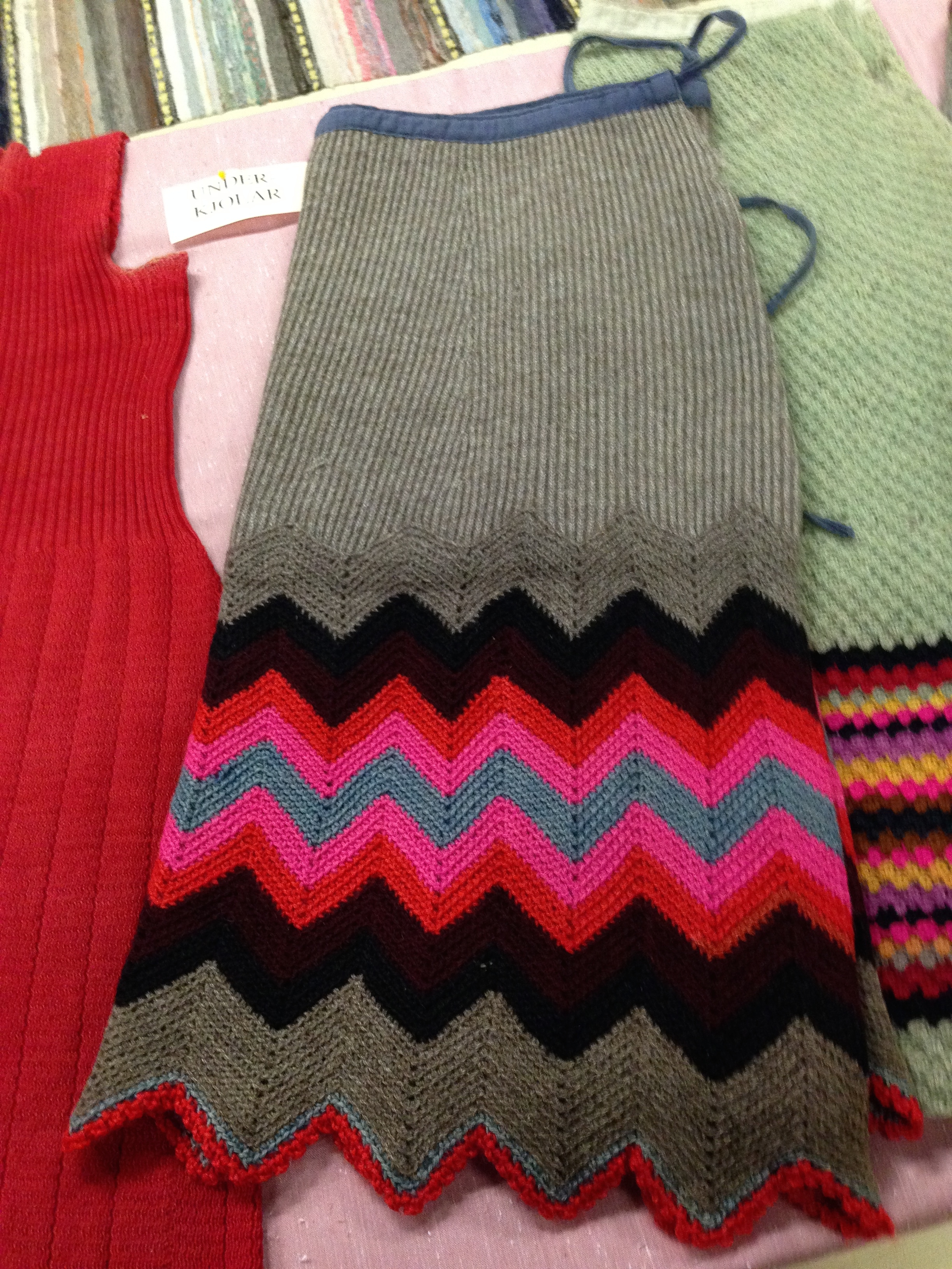 You all know how difficult stripes are! Susanne Hansson taught a class in designing and knitting jogless stripes at the Symposium. This closet with its bolster-cases was much admired!