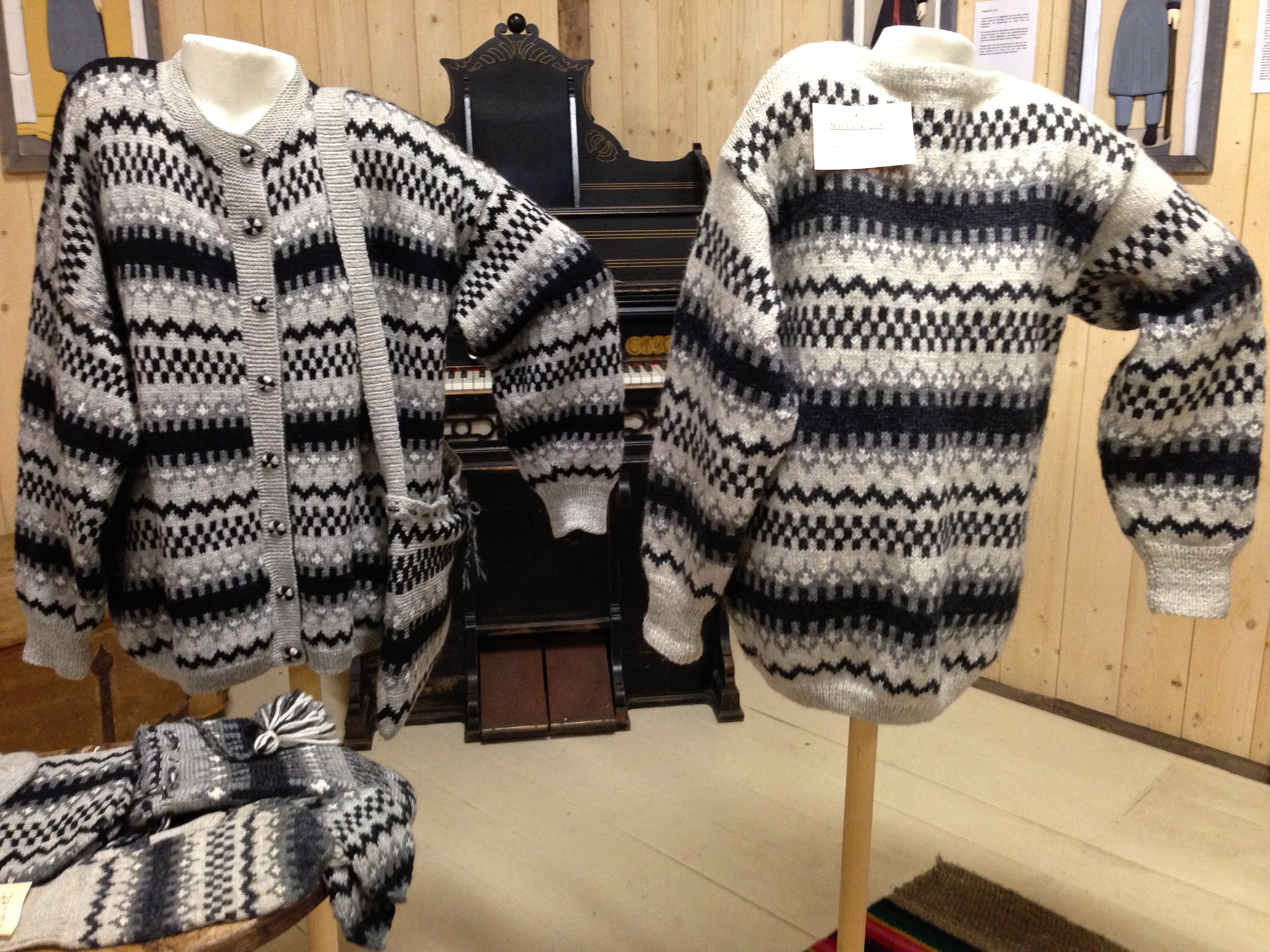 The next museum was Stundars, where I use to spin in the summers. I didn’t take any photos, so lets go on to the municipality Malax and have a look at Brinkens Museum, where the staff had displayed knitted socks, hats, mittens, sweaters, and more.
