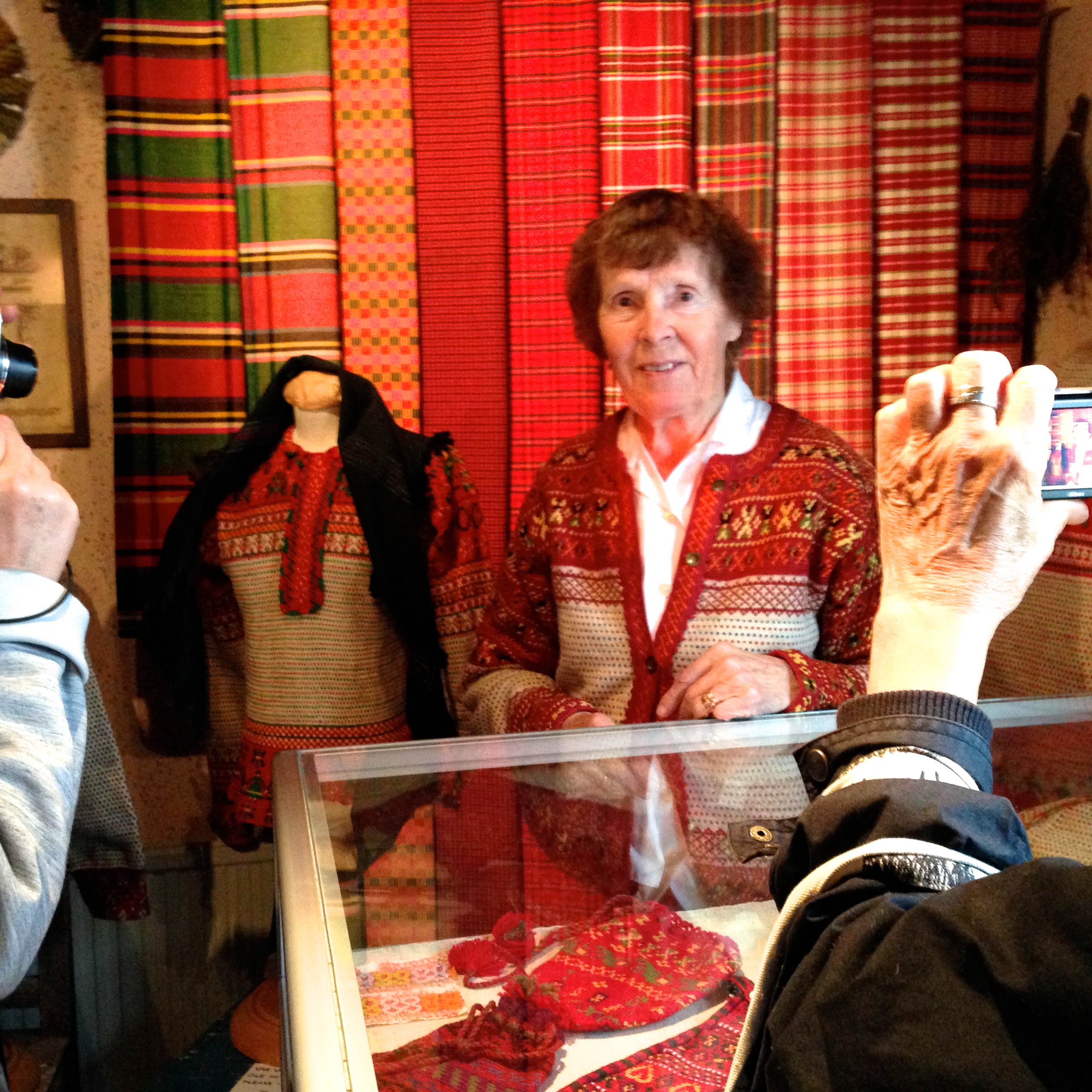 There was much more to see at Brinken, but let’s go on to the museum in Korsnäs. In this small municipality an amazing sweater was designed in the 19th century. It’s unique, as it’s partly crocheted and partly knitted. The women also developed a way of knitting where as many as four knitters work on the same sweater together, sitting in a circle, each knitting her own row and advancing in the same speed as the others. When we visited Korsnäs there were three knitters at work: