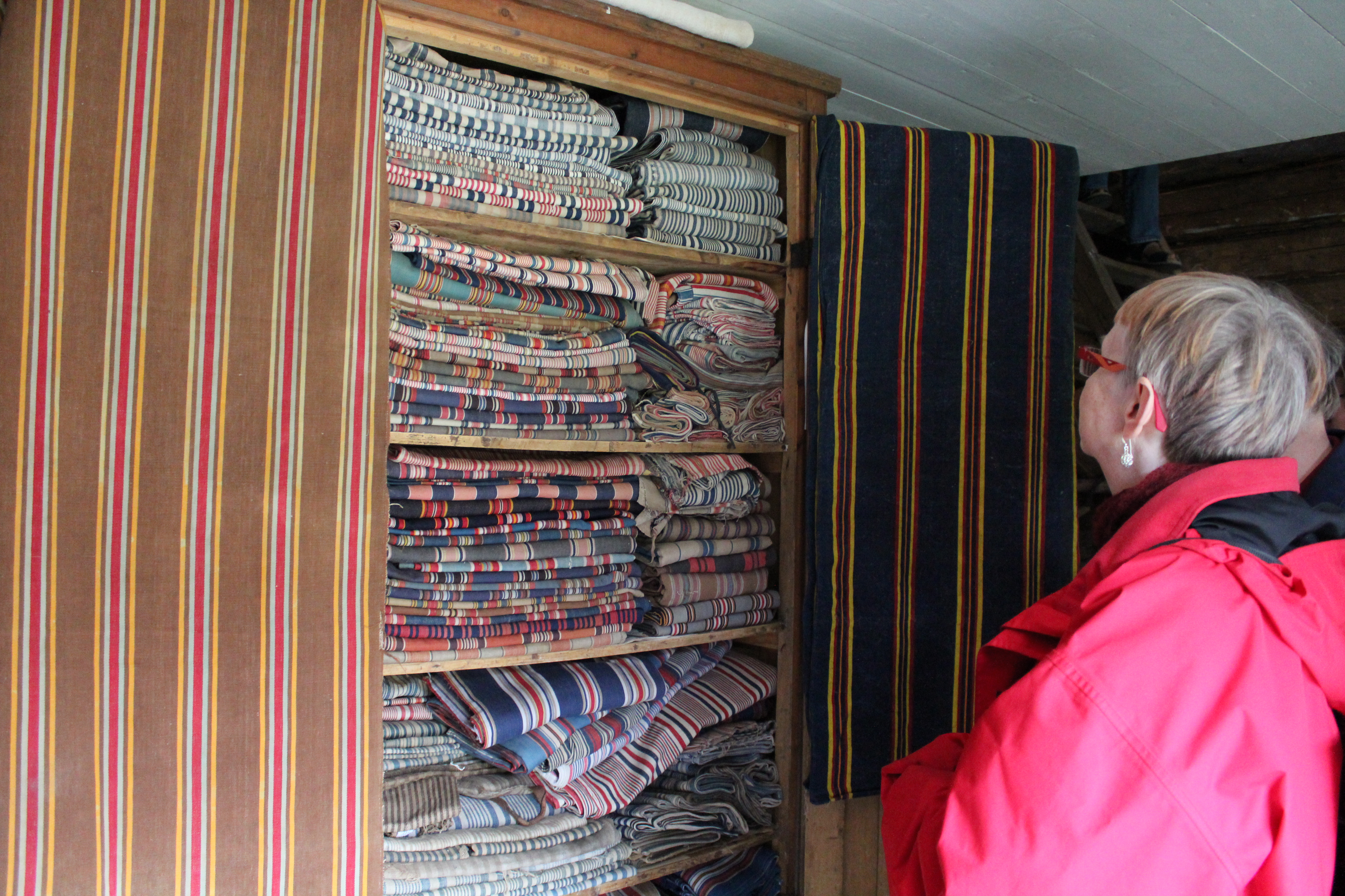 There are 17 buildings on the grounds. The museum is known for its large textile collection with more than 5000 items. It has an especially large collection of embroidery, as many women earned their living by selling embroidery at the beginning of the 20th century. There’s also lots of crocheted lace for bed linen, knitted socks and other garments. This is my favourite closet in the musum: