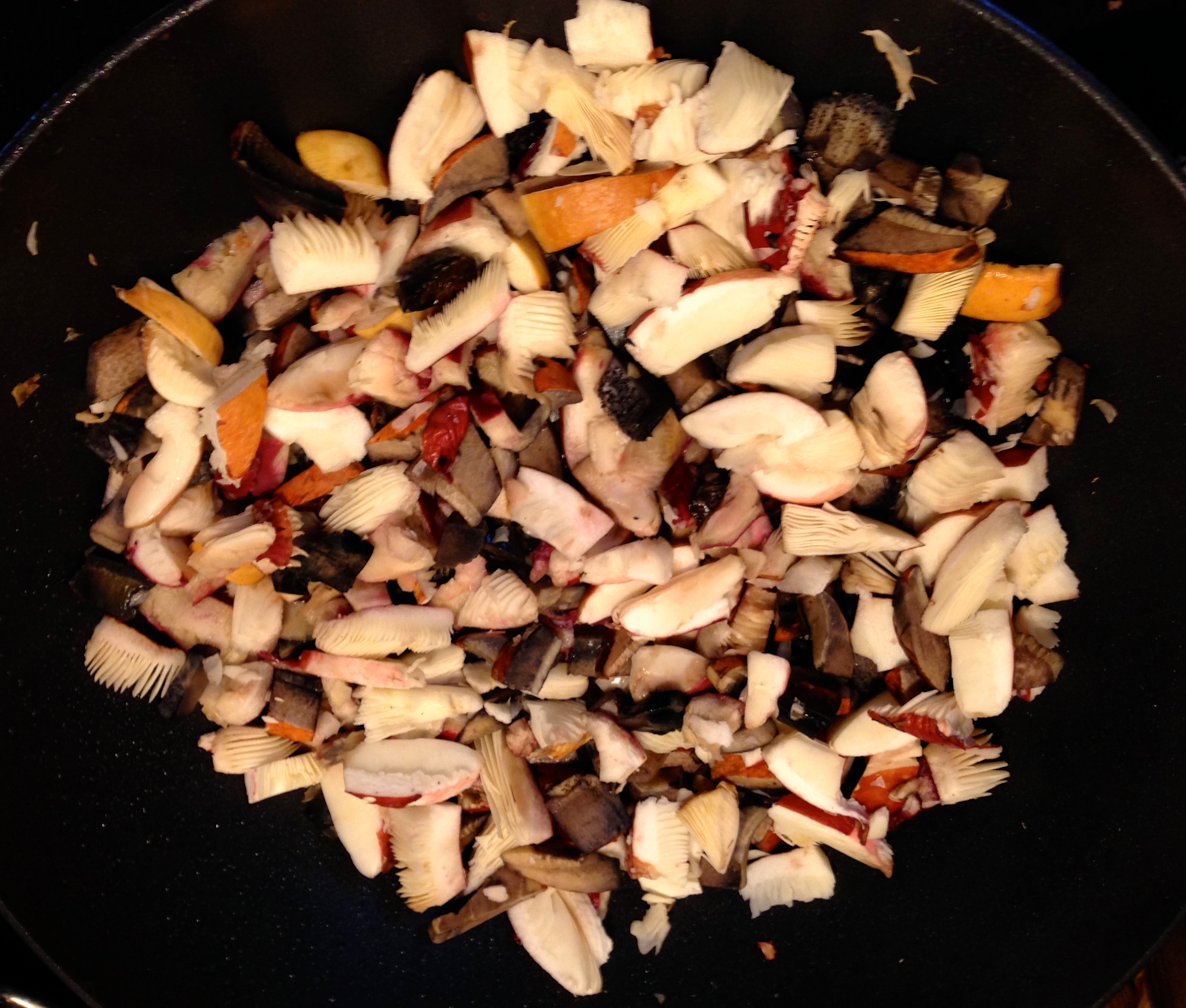 Ah, your dinner looks yummy. Nothing like fresh wild shrooms! And such a beautiful landscape to hunt them in. Too bad there are none to dye with. But do you have lichen and moss to dye with? Enjoy!