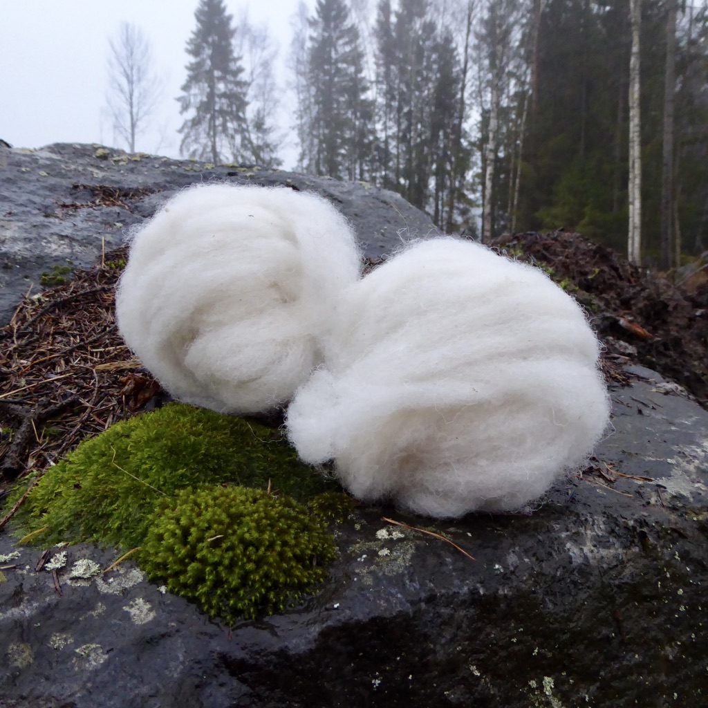 I was able to choose the fleece myself while it still was on the sheep, for which I’m very very grateful. Thank you Sari! I have started scouring the fleece, being careful not to wash out all of the lanolin as the fibers are so fine. The waxes and fat will protect them while I prepare and spin the fleece. The locks aren’t completely clean. I fear washing Finn fleece as it felts so easily. It’s better to wash the yarn, and I’m sure this will be sparkling white when finished.