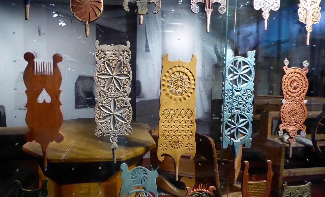 Three photos from the city museum: a beautiful spinning wheel and a few of the many distaffs they have on display. I wonder, can you walk into a museum in Finland and not find at least one distaff?