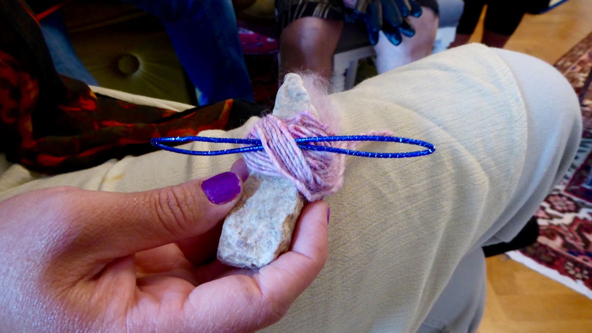 There was one lady who didn’t come to the class to learn, but to show something. I was so happy for this, and the others where amazed as they couldn’t imagine this can be done. It was a lady from Afghanistan. She sat down beside me and picked up a stone from her purse. Now you who know the history of spindle spinning recognise a stone as a spindle if you have fiber and want to make a thread, which she did.