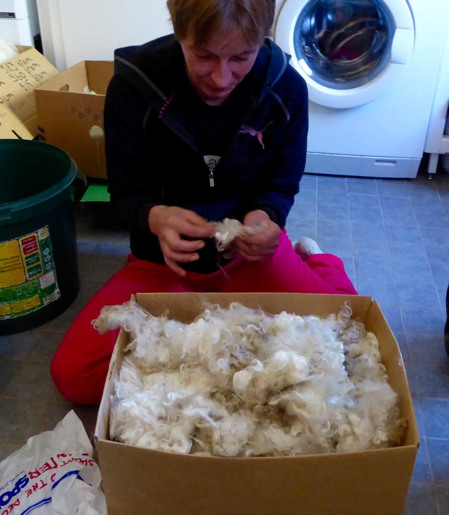 One last photo from the wool room. This is a double coated fleece, a quality that is very difficult to turn into yarn in a ordinary modern mill. But handspinners can! Don’t be afraid to buy beautiful fleeces like this. Double coated fleeces have been used for thousands of years. With the right kind of knowledge and skills you can spin them and weave, knit or felt beautiful and much valued sweaters, hats, mittens, blankets, socks, carpets.