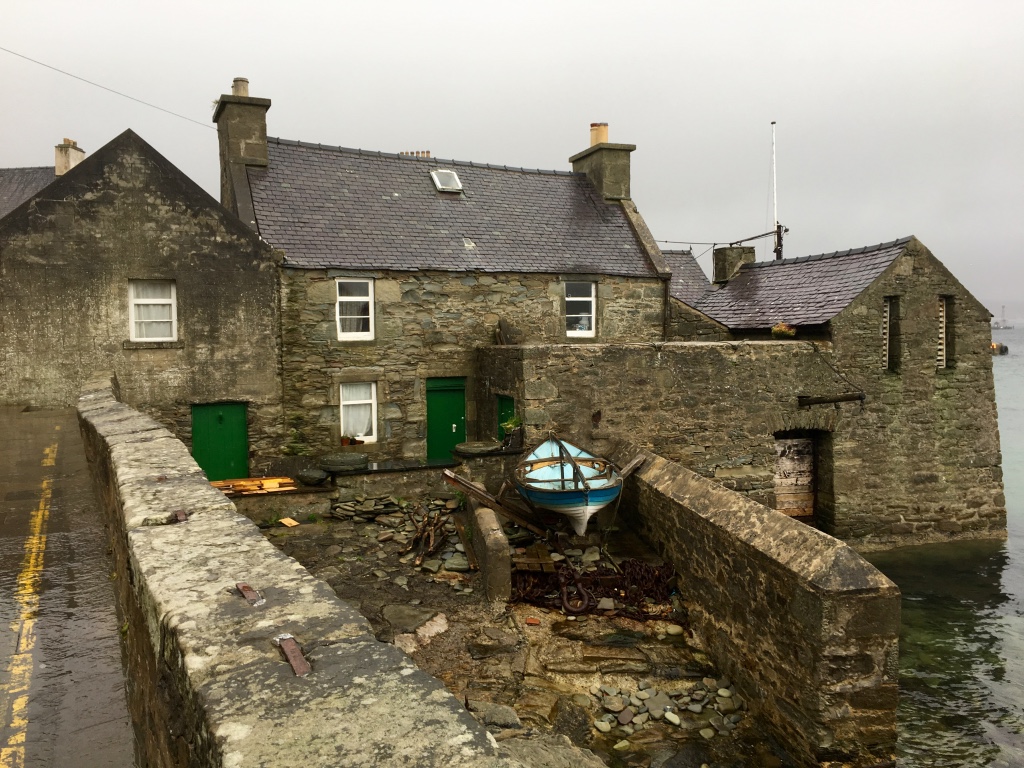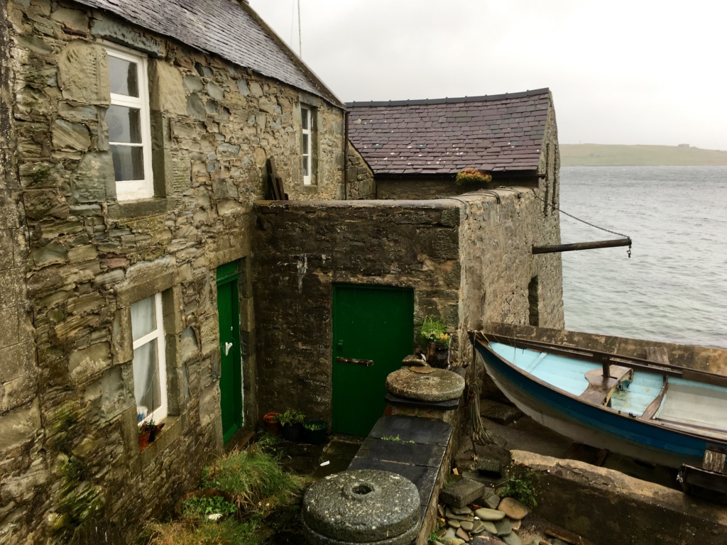 Lodberrie from the other side. All who have watched the Shetland TV series know this building. For your knowledge: Jimmy Perez walks through the green door, but the kitchen you can see inside isn’t in Lodberrie. It’s somewhere in mainland Scotland, Glasgow perhaps?