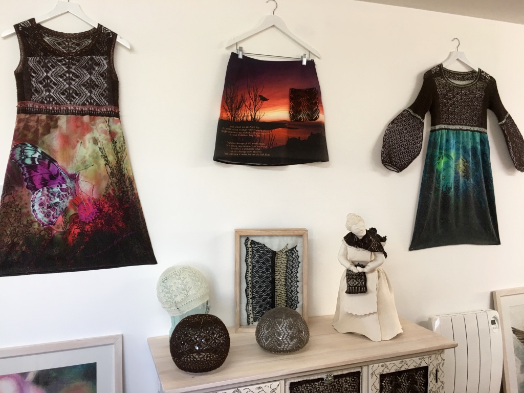 Angela Irvine’s studio was a total contrast. She gets her inspiration partly from traditional Shetland knits, as in this luxurious hat: