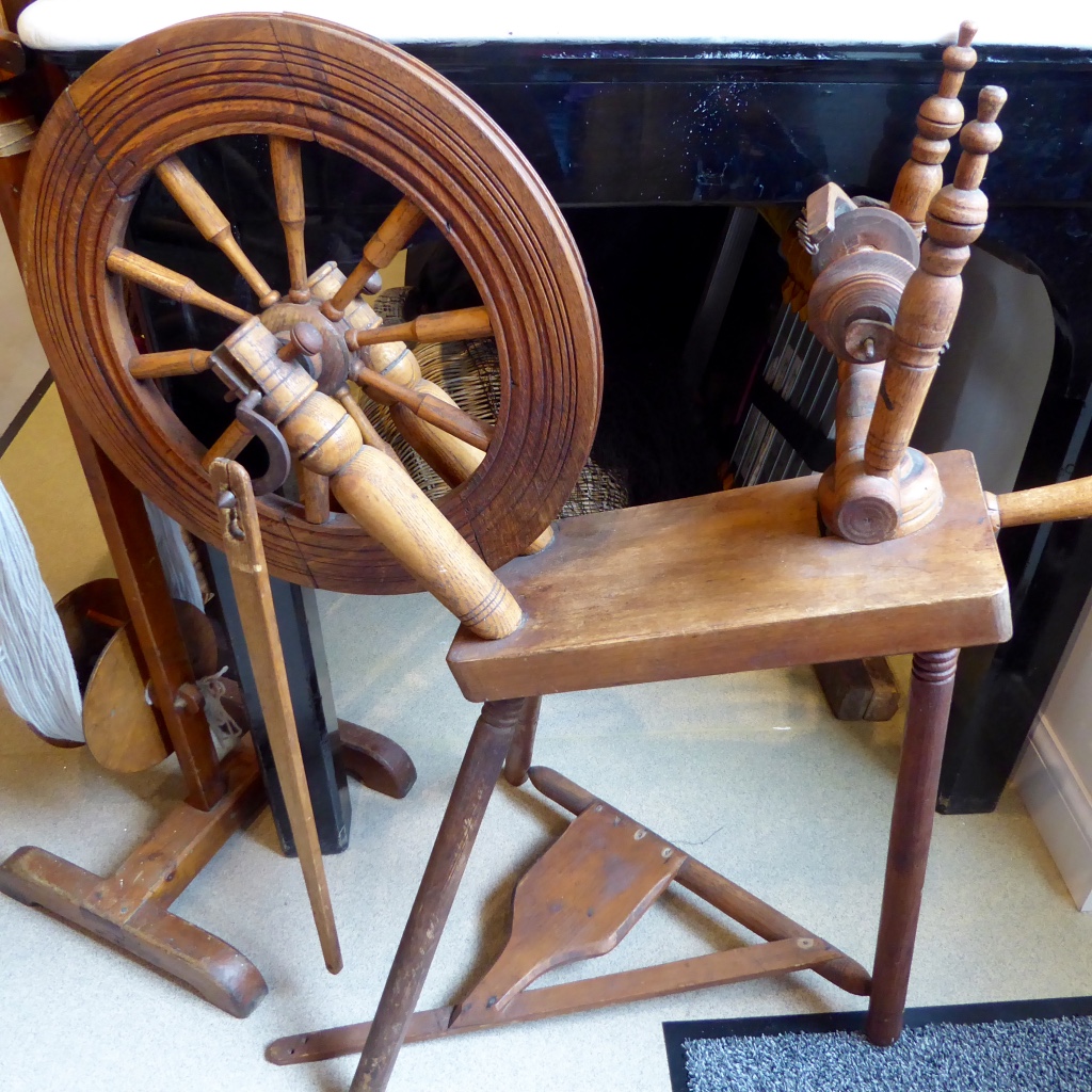 This is one of her wheels, a wee Shetland wheel. She has several wheels, both old and new.