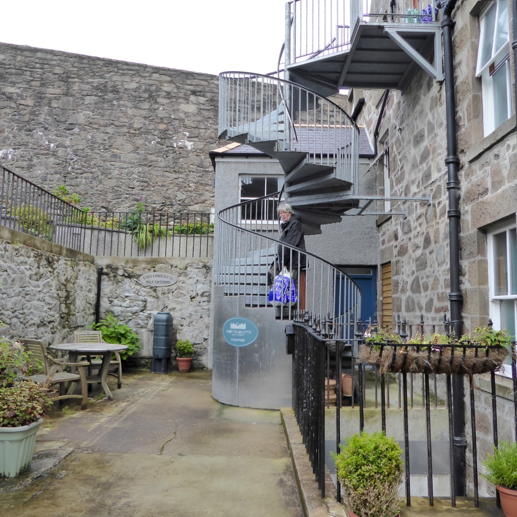 Back in Lerwick the stairs up to the self catering almost killed us…