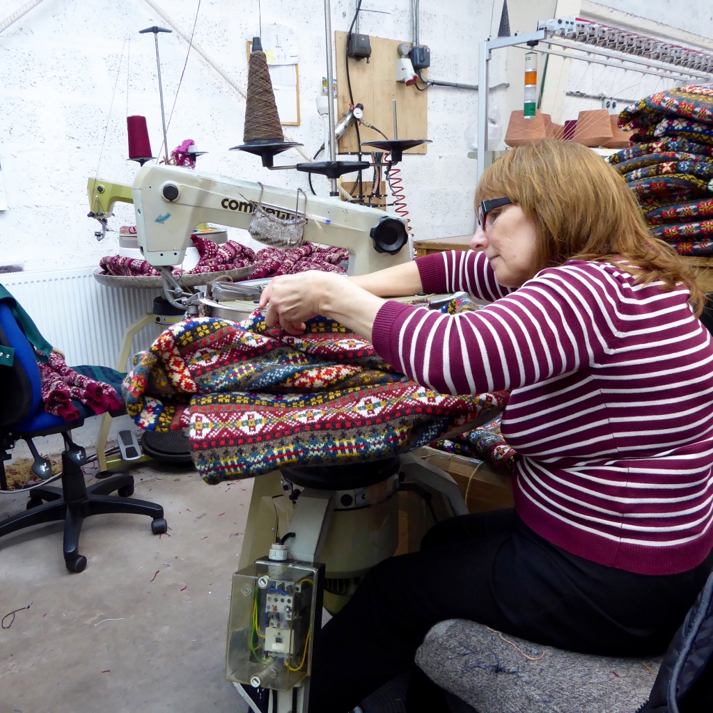 I’ll take you to the wool room next to the shop, because luckily I remembered to take photos there. First a glimpse of the incredible, lovable Oliver Henry, the man with more knowledge about Shetland wool than anyone else. I was at his last wool talk on September, Friday 30th, and it was just as fascinating as his talk at Stirling University in 2010, and later that same year in this very wool room. Oliver will retire in a near future, which makes many of us a bit sad. But he has an heir, a young lady called Jen, and I’m sure she’s capable, and the work will continue.