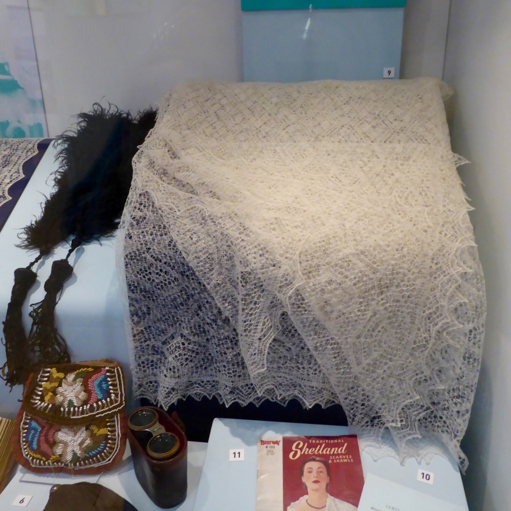 I have promised a post about Shetland Museum and Archives for a while now. I like museums, and I like this one very much. As with all museums, also this one has a lot more to show than you can see in the public exhibitions. For instance, textiles are often stored away from light that may damage them. In the Shetland Museum you can still see a lot, both originals and copies. They are behind glass, which you can see in my photos, sorry for that.