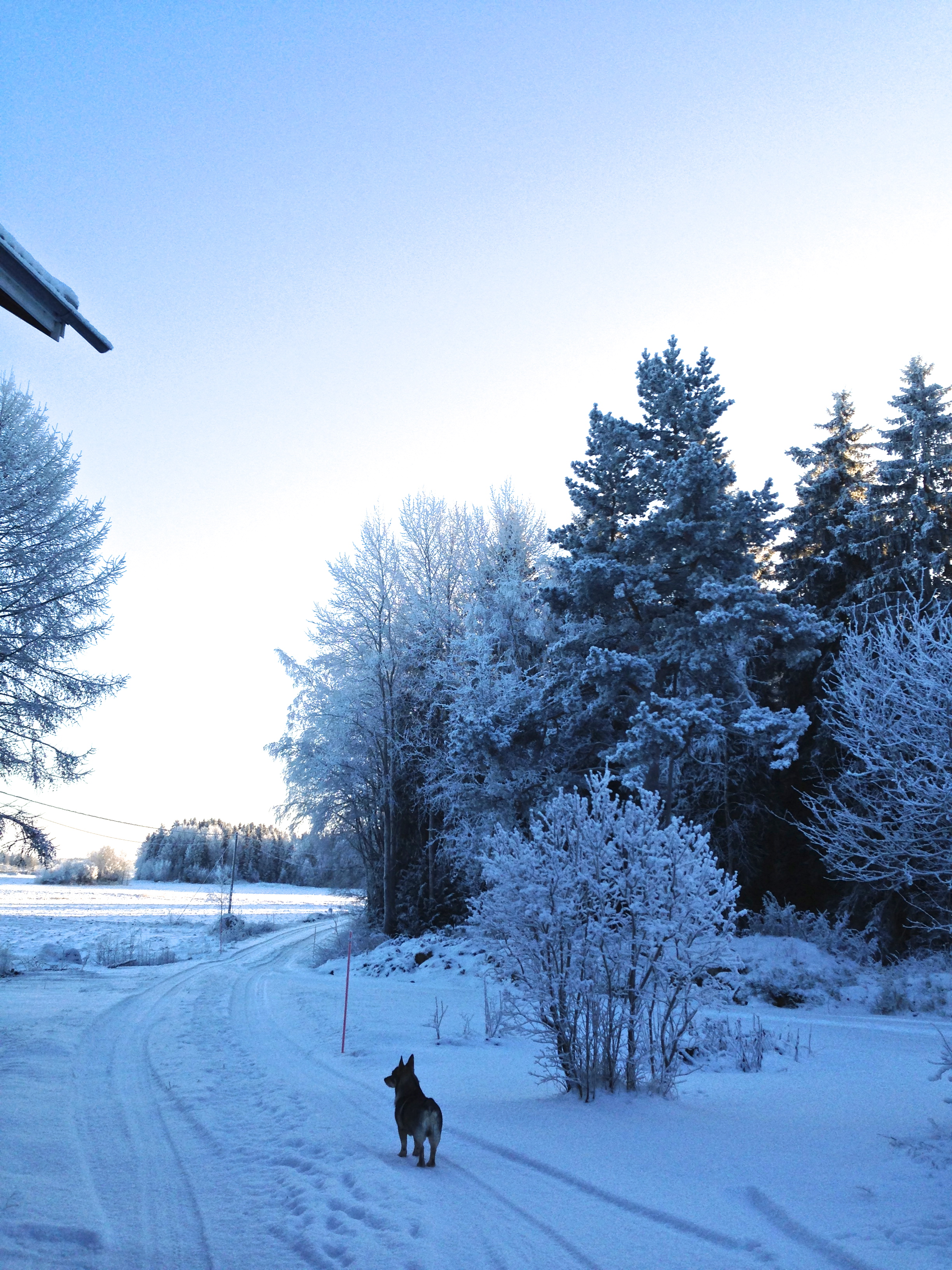 We finally have snow here in western Finland, and it’s cold as it should be in winter. Now I need my woollens! Kasper thinks it’s nice, too, but he already has his woollens on. I think I’ll knit him a sweater one day anyway. He’ll be 10 years old this spring, and will need something warm in winter.