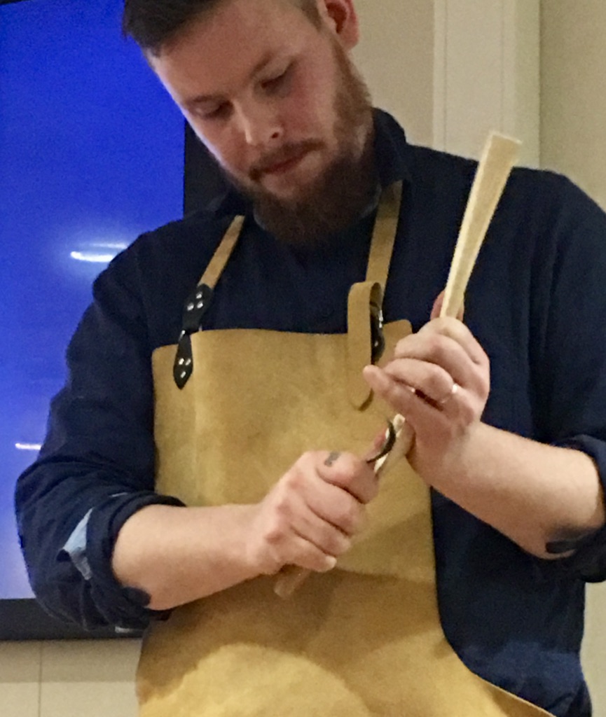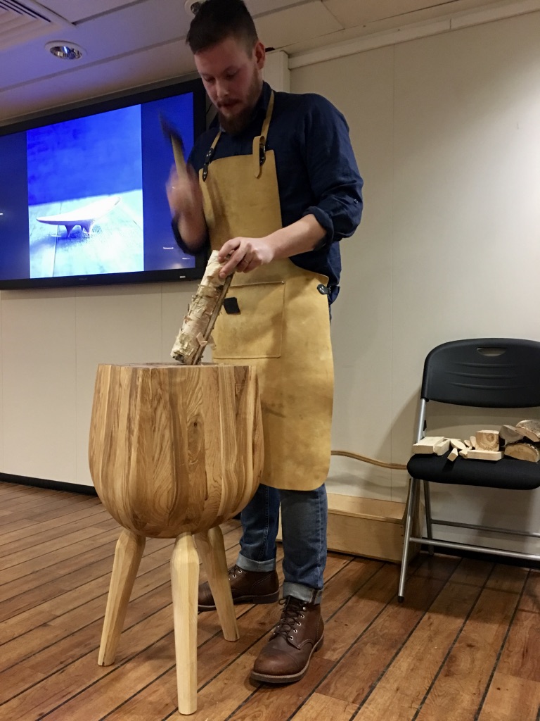 I often think that if I hadn’t been so interested in textiles, I would’ve turned to wood. So I thoroughly enjoyed watching how Andreas Söderlund made a spoon from what hubby and I would burn in our wood stove. Andreas has made the chopping block himself. This was a talk, not a workshop. I think handing over very sharp axes and knives to a bunch of eager ladies onboard a ferry isn’t permitted!