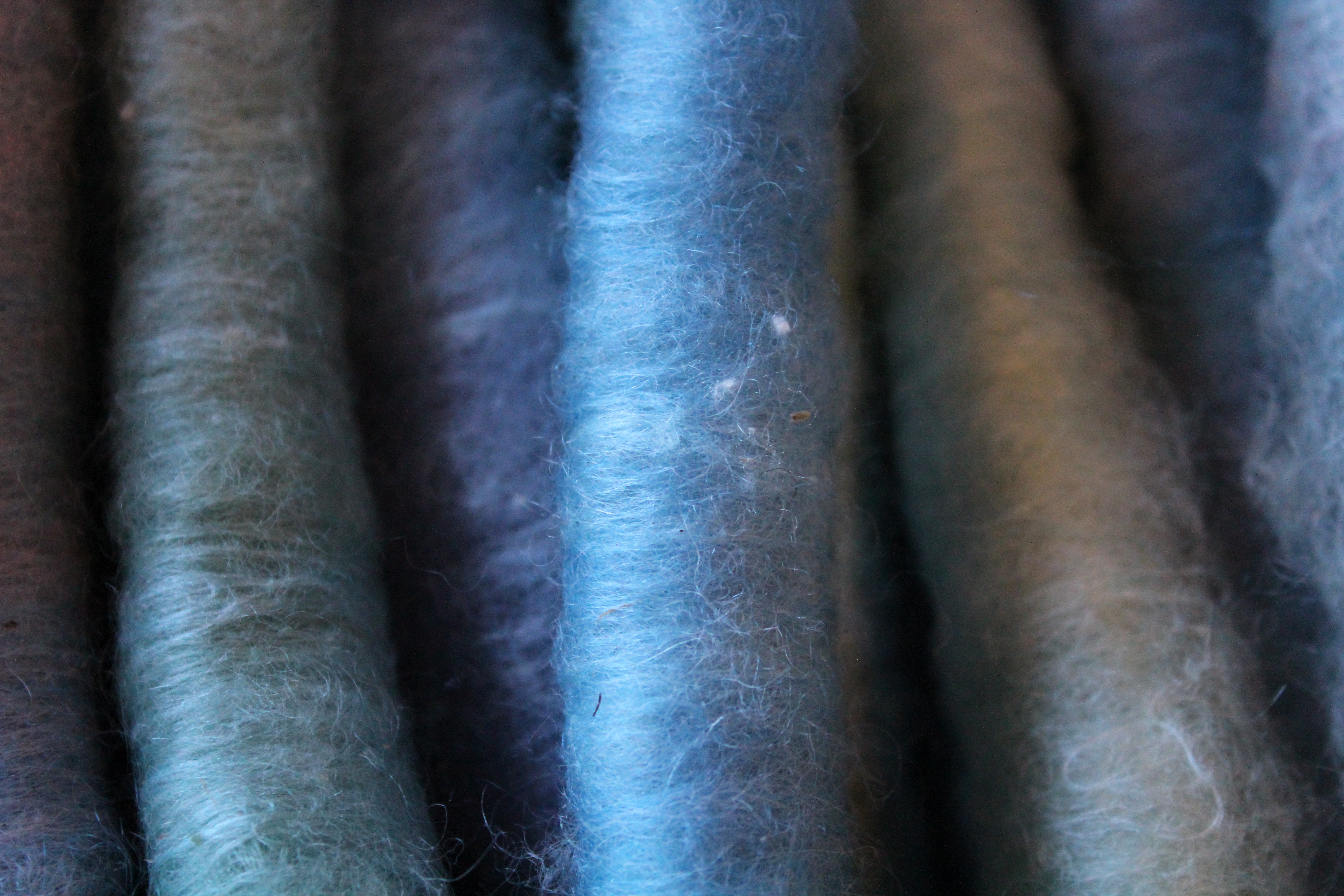 My Wovember spinning is progressing, but not quite to plans. I had planned to visit a sheep farmer last week in order to fetch a few Finn and Åland fleeces, but as so often things came in between, so I will go at the beginning of December instead. Today I spin a blue Swedish Finull-Silk blend. Earlier this month I carded wool I had acid dyed in October, and added light green silk top and white silk waste. The result is a very soft but a bit “chewy” prep that doesn’t spin quite even, but has a nice texture.
