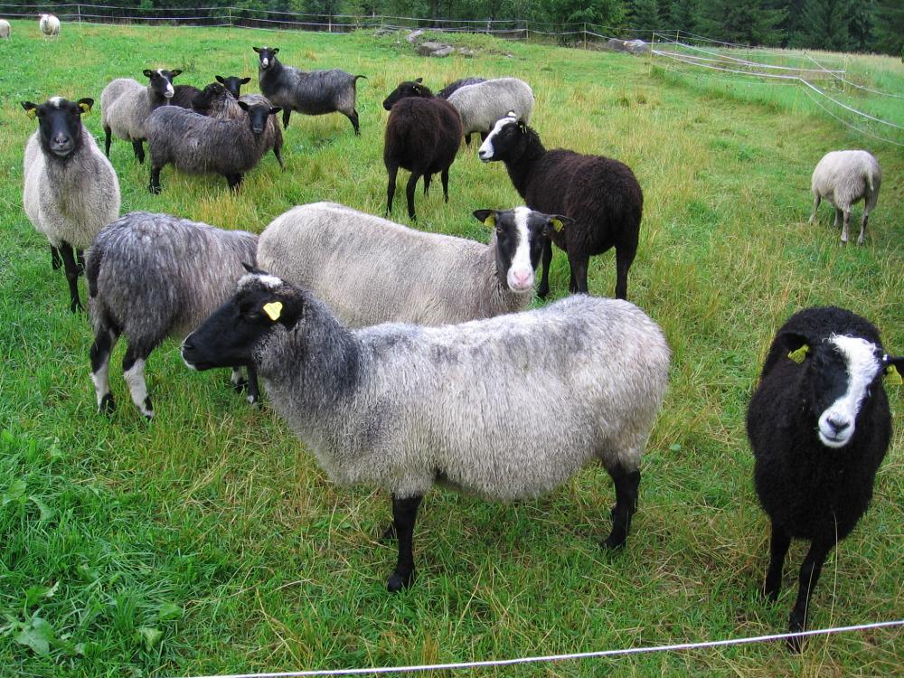Kainuu Grey, Kainuun harmas in Finnish, is one of the very sparse Finnish sheep breeds. It was considered to be a variety of Finnsheep until quite recently, but is now a recognized breed. It’s originally a dual purpose sheep that produced pelt for clothing, and meat. Nowadays it’s mostly a wool and meat sheep, as furs are not used to the same extension as before. The lambs are born black, and turn into various shades of grey when they grow older. The legs are black. I think the breed will develop into a more defined wool producer over time, as clothes made from sheep fur are seldom used any more. Some of the Kainuu Grey fleece’s I’ve spun have the tight curls that are wanted in fur sheep, whereas some are clearly more like the wools we want in spun yarns.