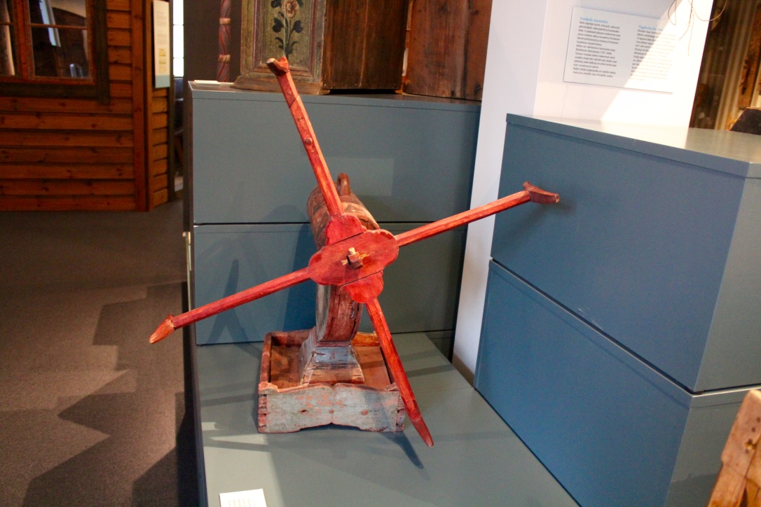 I was in my old home town Vaasa yesterday with hubby. While waiting for him when he did some errands, I went to the Ostrobothnian Museum to see if an old spinning wheel I’d heard of would be on display. It was, but I also saw this one:
