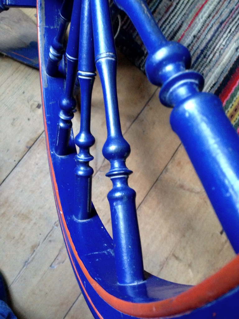 Blue is my colour. I like all colours, but I love blue. So last autumn I bought blue paint for the distaff holder where you put your distaff when you spin flax. The lower part of the holder is new, turned by a kind man at the outdoor museum where I use to spin in the summers. He wanted me to paint it, so I did that a couple of days ago. I painted my spinning chair blue as well, because I really like to paint. And because I love blue 🙂